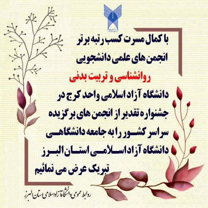 انجمن های علمی روانشناسی و تربیت بدنی واحد کرج رتبه برتر را کسب نمودند