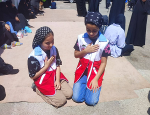 اعضای جوانان خانه هلال احمر استان البرز با استقرار ایستگاه سلامت در مراسم شیرخوارگان حسینی نسبت به ارائه خدمات به عزاداران اقدام کردند.