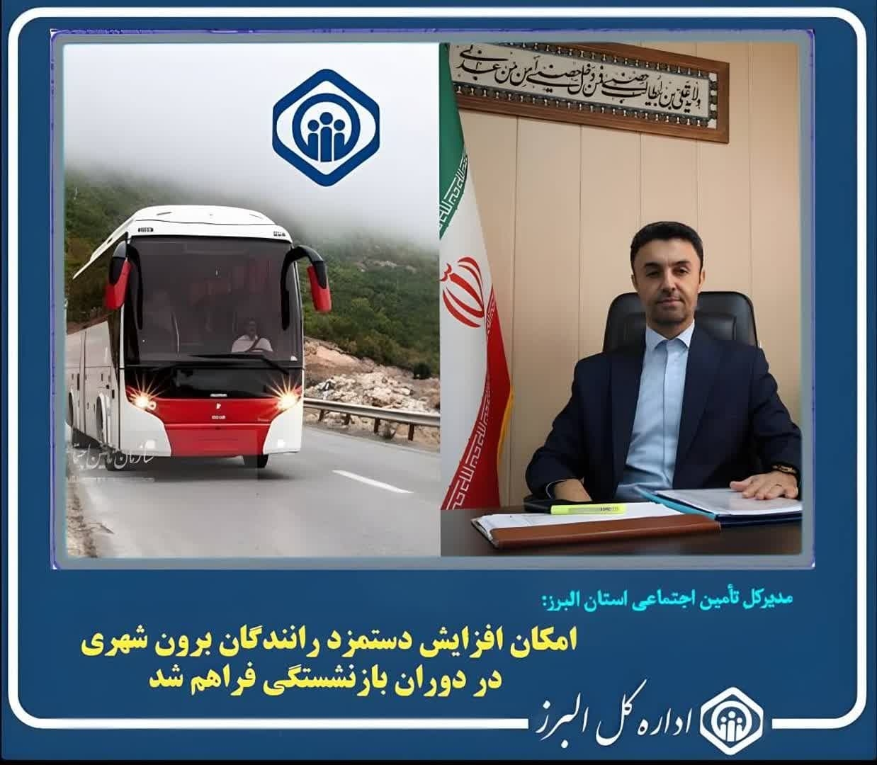 مدیرکل تأمین اجتماعی استان البرز اعلام کرد: حدود ۱۱ هزار راننده برون شهری این استان مشمول افزایش حقوق در دوران بازنشستگی شده اند که باید با مراجعه به سایت سازمان تامین اجتماعی اقدامات لازم را انجام دهند.