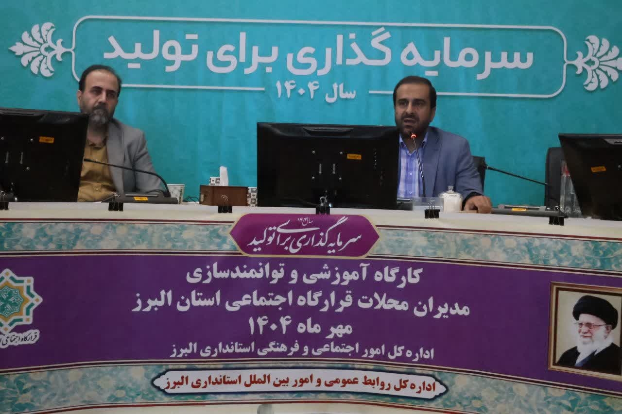 جلسه آموزشی و توانمندسازی مدیران محلات جدید قرارگاه اجتماعی استان البرز با حضور مدیرکل اجتماعی و فرهنگی استانداری البرز، در سالن جلسات استانداری برگزار شد.