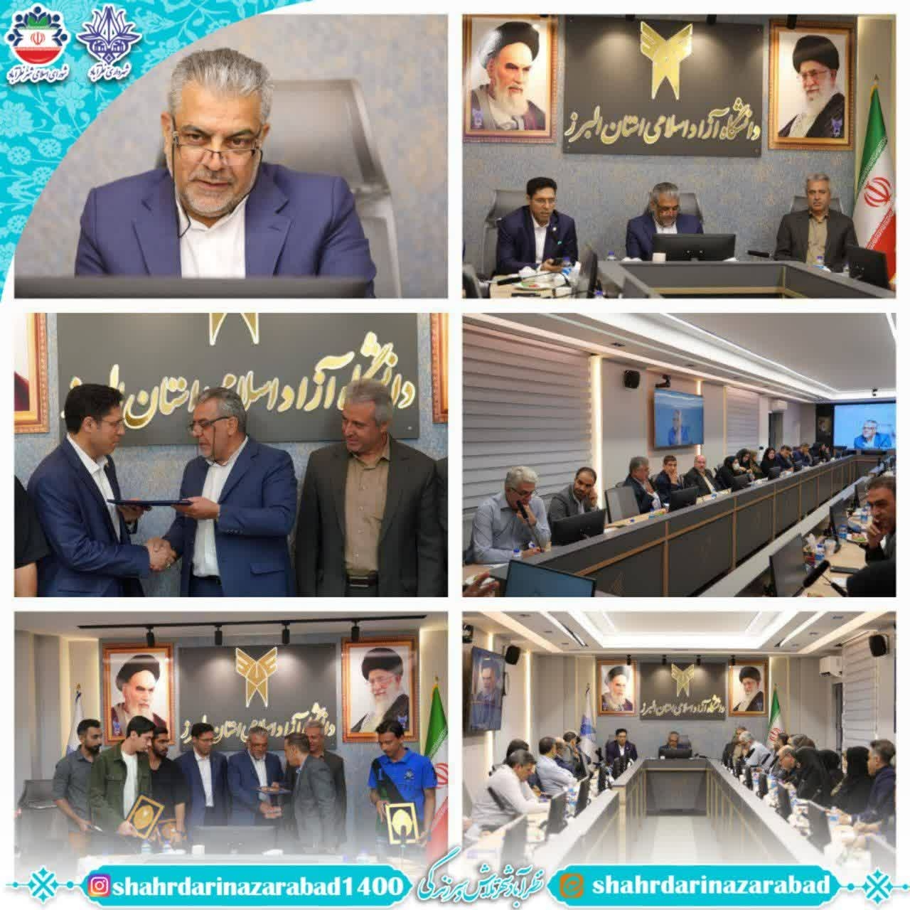 هفتمین جلسه شورای دانشگاه آزاد اسلامی استان البرز با حضور دکتر حسین کلانتری رئیس دانشگاه آزاد اسلامی استان البرز و واحد کرج، دکتر عسگر نصیری شهردار نظرآباد، و جمعی از اعضای شورای دانشگاه در سالن جلسات شهید رئیسی واحد کرج برگزار شد.