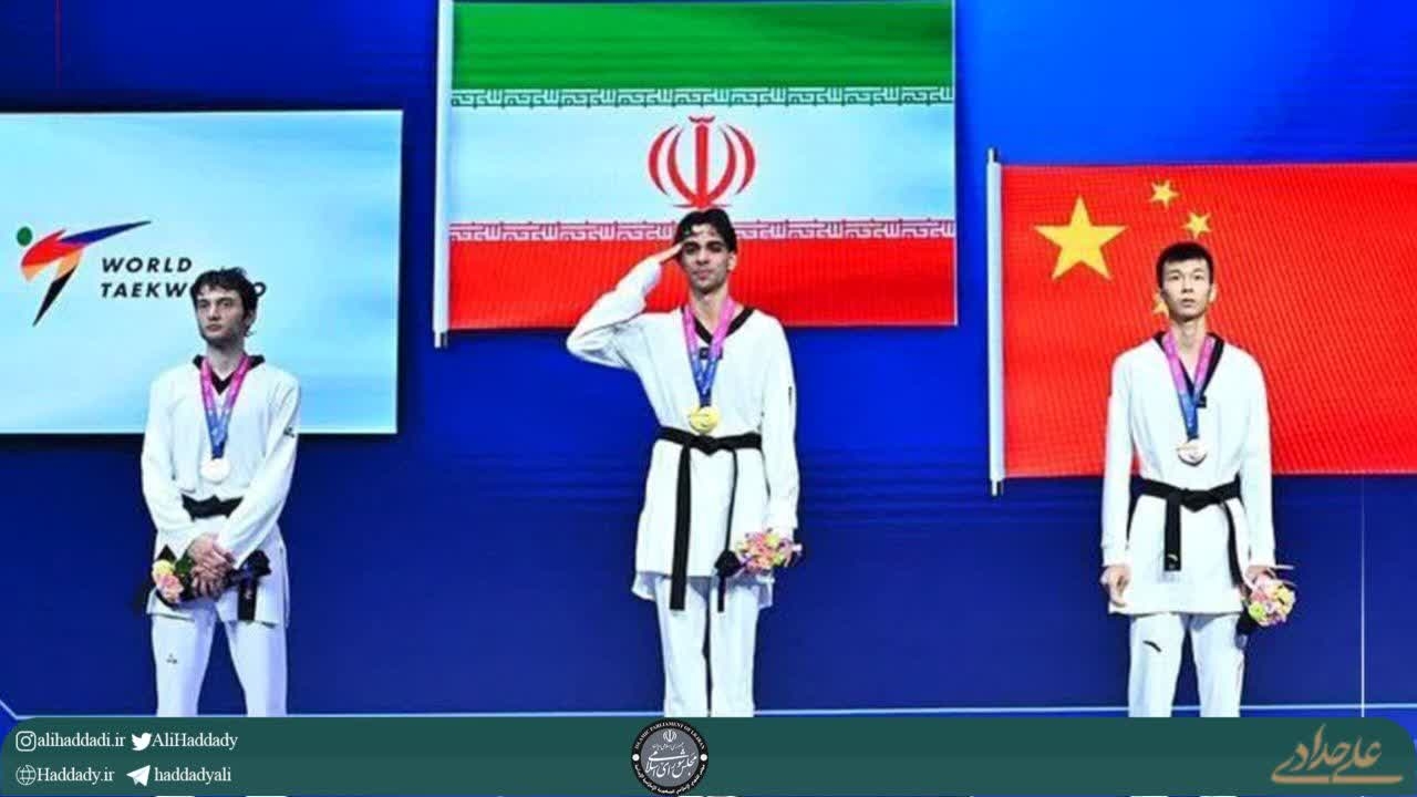 پیام تبریک علی حدادی به قهرمان نظرآبادی تیم ملی تکواندو