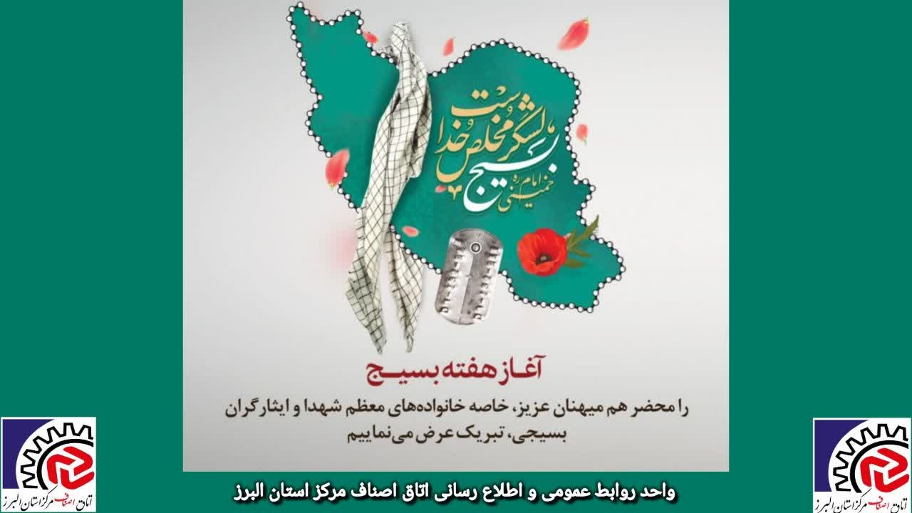 هفته بسیج یادگار ارزشمند حضرت امام خمینی ( ره )برای تحقق آرمانهای نظام مقدس جمهوری اسلامی و بسیج شجره طیبه و مجموعه ی باشکوهی از یگانگی،هم دلی و هم صدایی است که جامعه را به سمت ارزش های والای اسلامی رهنمون می کند.احساس مسئوليت و تعهد در برابرانقلاب، شناخت نسبت به شرایط زمان و مکان، حماسه آفرینی‌ها و فداکاری‌های این مجموعه انقلابی، تنها محدود به دوران دفاع مقدس نبوده بلکه در تمام دوران حیات  انقلاب اسلامی در کنار ملت در ابعاد مختلف ، مشهود است و وظیفه ی تک تک ماست تا با ترویج و تبلیغ فرهنگ اصیل  بسیج در راستای گسترش و تقویت روحیه ی ایثار و از خودگذشتگی،مسیر اهداف و آرمان های انقلاب اسلامی را هموار نماییم.اینجانبان ضمن گرامیداشت یاد و خاطره حضرت امام خمینی (ره) و شهدای والامقام ،فرا رسیدن هفته بسیج را به بسیجیان متعهد ایران اسلامی بویژه خواهران و برادران بسیجی استان البرز تبریک  وتهنیت عرض نموده و از خداوند متعال سربلندی ایران اسلامی و توفیق خدمتگزاری و ادامه راه شهیدان را  تحت منویات فرماندهی معظم کل قوا برای همگان مسئلت می نماییم.