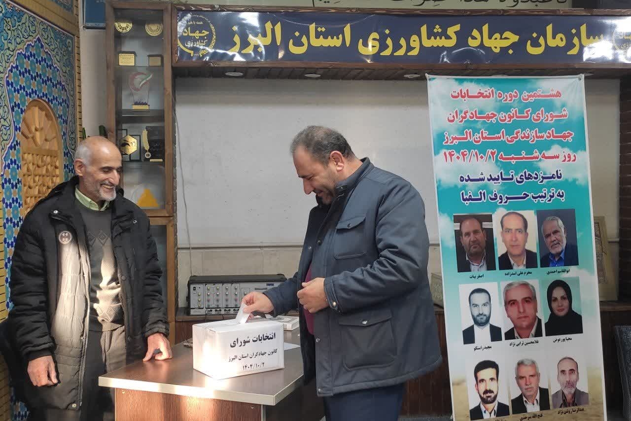 انتخابات هشتمین دوره کانون جهادگران استان البرز در سالن اجتماعات سازمان جهاد کشاورزی استان برگزار شد.در این انتخابات، از مجموع ۲۷۴ رأی مأخوذه،تعداد ۲۷۳ رأی صحیح به ثبت رسید.