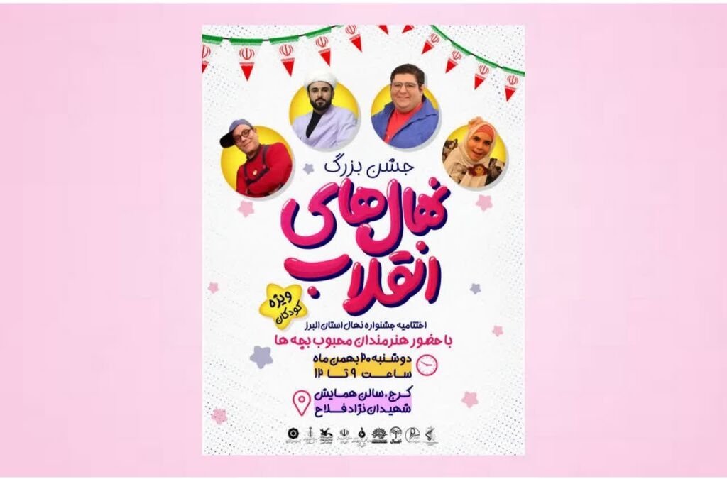 آیین اختتامیه «جشن بزرگ نهالهای انقلاب» با ا حضور پرشور نونهالان، خانوادهها و هنرمندان محبوب کودکان در تالار شهیدان نژادفلاح کرج برگزار شد؛ مراسمی که با مشارکت کانون پرورش فکری کودکان و نوجوانان استان البرز و با حضور زینب عاشری، مدیرکل کانون استان البرز، به همراه جمعی از مسئولان و همراهان همراه بود.