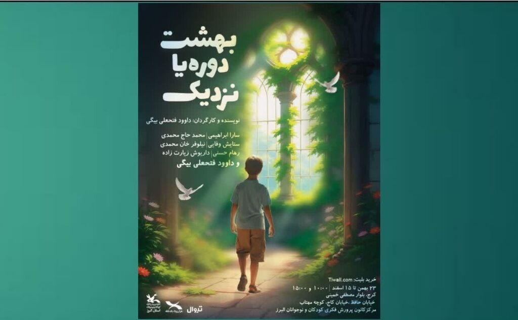 نمایش «بهشت دوره یا نزدیک» یکی از آثار تحت حمایت مرکز تولید تئاتر و تئاتر عروسکی کانون در طرح سراسری «هزار رویا، یک نگاه» است که نمایشنامهخوانی آن در روز دوشنبه ۲۷ بهمنماه ۱۴۰۴ در مرکز شماره ۳ کانون البرز اجرا شد.رویداد سراسری «هزار رویا، یک نگاه» طرحی جامع و ارزشمند با حمایتهای مدیرعامل محترم کانون کشور، معاونت تولید و مرکز تولید تئاتر و تئاتر عروسکی کانون در راستای تولید نمایش و نمایش عروسکی حرفهای برای کودکان و نوجوانان در استانهای سراسر کشور است.