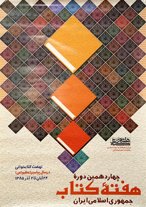 در پوستر چهاردهمین دوره هفته کتاب جمهوری اسلامی ایران در نگاه نخست، ترکیبی از کاشیهای سنتی ایرانی دیده میشود که در مرکز خود، کتابهایی نارنجی و سرخ را جای دادهاند. این طراحی، نمادی از جای گرفتن کتاب در قلب فرهنگ ایرانی ـ اسلامی است؛ جایی که کتاب همچون کاشی در معماری روح و ذهن جای میگیرد.چیدمان صعودی کتابها در محور عمودی، استعارهای از حرکت از زمین تا آسمان است؛ از خواندن تا روشنایی. رنگ نارنجی در این پوستر، یادآور انرژی و بیداری است و کاشیهای تیره پیرامونی، تضاد میان جهل و نور دانایی را تداعی میکنند. در پایین پوستر، شعار «نهضت کتابخوانی در سال پیامبر اعظم (ص)» درج شده؛ گویی طنین صدای وحی در پسزمینه طرح به گوش میرسد.