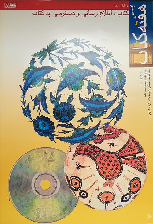 پوستر نهمین هفته کتاب یکی از نمادینترین طراحیها بود. در پسزمینه، نقوش گلوبتههای ایرانی در کنار تصویر یک لوح فشرده (CD) قرار داشت؛ تلفیقی از سنتهای کهن با فناوری نو. این پوستر پیامی روشن داشت: کتاب در آغاز هزاره جدید، نه محدود به کاغذ، که باید در همه قالبهای نوین حضور یابد تا چراغ دانایی خاموش نشود.