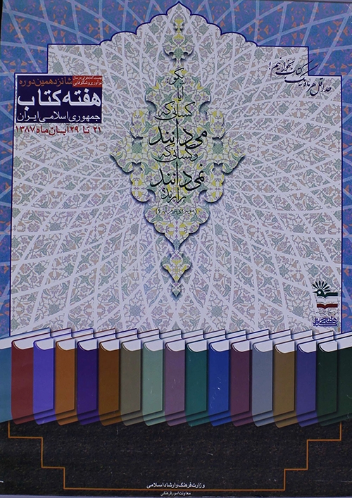 پوستر این دوره با پسزمینهای از کاشیکاری ایرانی طراحی شده بود؛ ترکیبی از هندسه اسلامی و تصویر صفِ منظم کتابها در پایین صفحه. در مرکز تصویر، جملهای از رهبر انقلاب نقش بسته بود: «تا میتوانید کتاب بخوانید، تا میتوانید بدانید.» این طراحی، تصویری از هماهنگی میان زیباییشناسی ایرانی و مفهوم دانایی بود؛ کتابهایی که همچون آجرهای رنگین در کاشیکاری سنتی، بنای فرهنگ را استوار میکردند. رنگهای متنوع جلدها یادآور تنوع حوزههای دانایی بود و نظم هندسی تصویر، نماد وحدت و نظم فکری در جامعهای بود که هنوز کتاب را محور معنا میدانست.