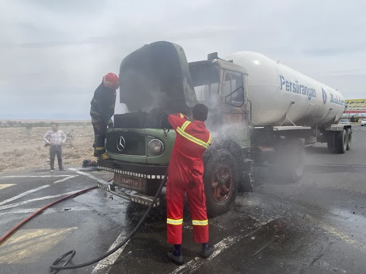 "یوسف علیمیرزا" افزود: این حادثه در ساعت ۱۱ و ۱۲ دقیقه تقاطع جاده اشتهارد – نجم آباد به وقوع پیوست.وی اظهارداشت: بر اثر این حادثه راننده تریلی بنز از ناحیه دست و پا دچار سوختگی شد که توسط مرکز فوریت های پزشکی به بیمارستان الزهرا (س) منتقل شد.علیمیرزا اعلام کرد: با حضور به موقع نیروهای آتش نشانی شهرداری و شهرک صنعتی و اطفا حریق از سرایت آتش به مخزن حامل گاز مایع جلوگیری به عمل آمد.این مسئول گفت: علت اصلی حادثه از سوی کارشناسان در حال بررسی است.