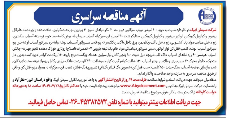 14 مهر 1404 شماره خبر: 332264 آگهی مناقصه سراسری شرکت سیمان آبیک سپیدارآنلاین: گروه مزایده و مناقصه آگهی مناقصه سراسری شرکت سیمان آبیک روزنامه پیام سپیدار شماره 2703 منتشر شد. نسخه قابل چاپ برچسب ها: آگهی مناقصه سراسری شرکت سیمان آبیک روزنامه پیام سپیدار شماره 2703 منتشر شد. مطالب مشابه: روزنامه پیام سپیدار آگهی مناقصه شرکت سیمان آبیک آگهی مناقصه شرکت سیمان آبیک آگهی مناقصه شرکت سیمان آبیک آگهی مناقصه عمومی شرکت سیمان آبیک آگهی مناقصه عمومی شرکت سیمان آبیک