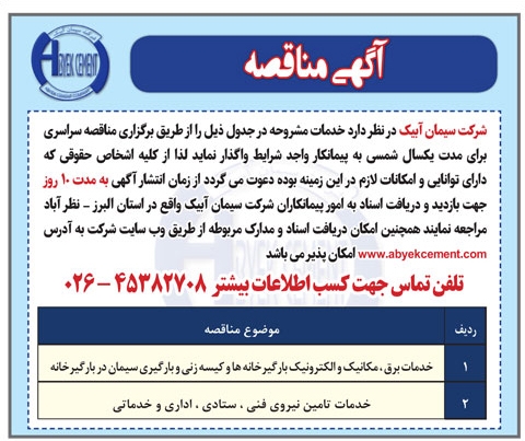 5 آبان 1404 شماره خبر: 333745 آگهی مناقصه شرکت سیمان آبیک سپیدارآنلاین: گروه مزایده و مناقصه آگهی مناقصه شرکت سیمان آبیک روزنامه پیام سپیدار شماره 2718 منتشر شد. نسخه قابل چاپ برچسب ها: آگهی مناقصه شرکت سیمان آبیک روزنامه پیام سپیدار شماره 2718 منتشر شد. مطالب مشابه: روزنامه پیام سپیدار آگهی مناقصه شرکت سیمان آبیک آگهی مناقصه شرکت سیمان آبیک آگهی مناقصه شرکت سیمان آبیک آگهی مناقصه عمومی شرکت سیمان آبیک آگهی مناقصه عمومی شرکت سیمان آبیک