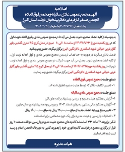 اصلاحیه آگهی مجمع عمومی عادی و سالیانه و مجمع فوق العاده انجمن صنفی کارفرمایی دفاتر پیشخوان استان البرز