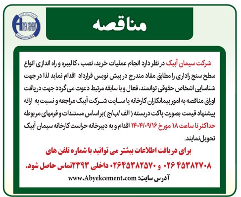 28 آبان 1404 شماره خبر: 335368 آگهی مناقصه شرکت سیمان آبیک سپیدارآنلاین: گروه مزایده و مناقصه آگهی مناقصه شرکت سیمان آبیک روزنامه پیام سپیدار شماره 2735 منتشر شد. نسخه قابل چاپ برچسب ها: آگهی مناقصه شرکت سیمان آبیک روزنامه پیام سپیدار شماره 2735 منتشر شد. مطالب مشابه: روزنامه پیام سپیدار آگهی مناقصه شرکت سیمان آبیک آگهی مناقصه شرکت سیمان آبیک آگهی مناقصه شرکت سیمان آبیک آگهی مناقصه عمومی شرکت سیمان آبیک آگهی مناقصه عمومی شرکت سیمان آبیک