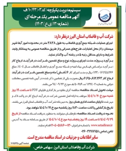 آگهی مناقصه عمومی یک مرحله ای شماره 130/ ی ع/1404 شرکت آب و فاضلاب استان البرز روزنامه پیام سپیدار شماره 2755 منتشر شد.