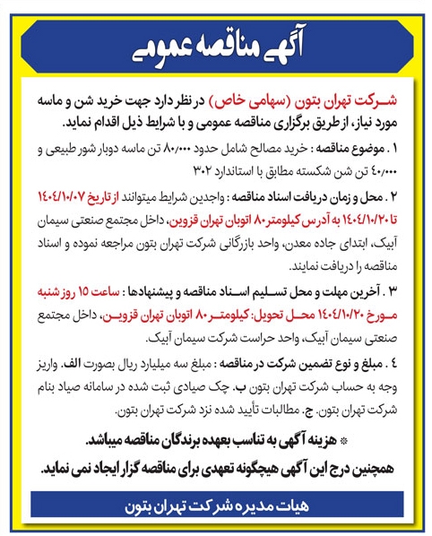 6 دی 1404 شماره خبر: 337610 آگهی مناقصه عمومی شرکت تهران بتون سپیدارآنلاین: گروه مزایده و مناقصه آگهی مناقصه عمومی شرکت تهران بتون روزنامه پیام سپیدار شماره 2760 منتشر شد. نسخه قابل چاپ برچسب ها: آگهی مناقصه عمومی شرکت تهران بتون روزنامه پیام سپیدار شماره 2760 منتشر شد. مطالب مشابه: آگهی مناقصه عمومی شرکت تهران بتون آگهی مناقصه عمومی شرکت تهران بتون آگهی مناقصه عمومی شرکت تهران بتون آگهی مناقصه شرکت تهران بتون آگهی مناقصه خرید شن و ماسه شرکت تهران بتون