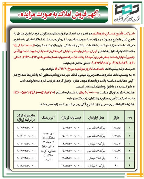 11 بهمن 1404 شماره خبر: 338989 آگهی فروش املاک به صورت مزایده شرکت تامین مسکن فرهنگیان سپیدارآنلاین: گروه مزایده و مناقصه آگهی فروش املاک به صورت مزایده شرکت تامین مسکن فرهنگیان روزنامه پیام سپیدار شماره 2783 منتشر شد. نسخه قابل چاپ برچسب ها: آگهی فروش املاک به صورت مزایده شرکت تامین مسکن فرهنگیان روزنامه پیام سپیدار شماره 2783 منتشر شد. مطالب مشابه: روزنامه پیام سپیدار آگهی فروش املاک به صورت مزایده سازمان اموال و املاک ستاد روزنامه پیام سپیدار آگهی مزایده کتبی - فروش املاک شهرداری مشکین دشت آگهی فروش املاک به صورت مزایده شهرداری کرج آگهی فروش املاک به صورت مزایده سازمان اموال و املاک ستاد آگهی فروش املاک به صورت مزایده سازمان اموال و املاک ستاد