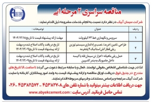 4 اسفند 1404 شماره خبر: 340264 مناقصه سراسری 2 مرحله ای شرکت سیمان آبیک سپیدارآنلاین: گروه مزایده و مناقصه مناقصه سراسری 2 مرحله ای شرکت سیمان آبیک روزنامه پیام سپیدار شماره 2798 منتشر شد. نسخه قابل چاپ برچسب ها: مناقصه سراسری 2 مرحله ای شرکت سیمان آبیک روزنامه پیام سپیدار شماره 2798 منتشر شد. مطالب مشابه: آگهی مناقصه سراسری دو مرحله یی شرکت سیمان آبیک آگهی مناقصه سراسری دو مرحله ایی شرکت سیمان آبیک آگهی مناقصه سراسری دو مرحله ایی شرکت سیمان آبیک آگهی مناقصه سراسری دو مرحله ایی شرکت سیمان آبیک آگهی مناقصه سراسری 2 مرحله ای شرکت سیمان آبیک
