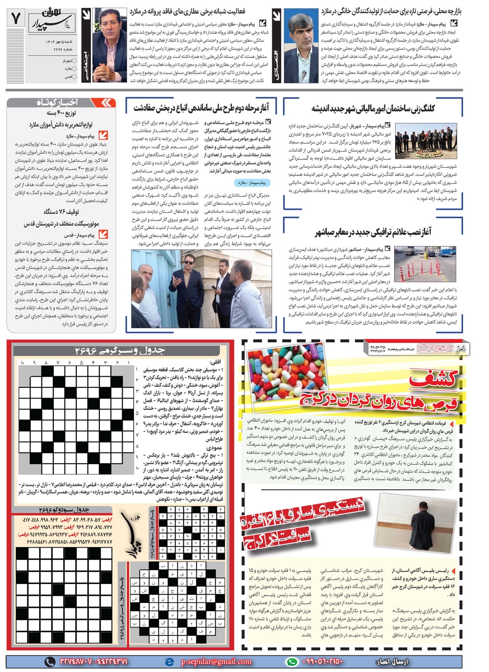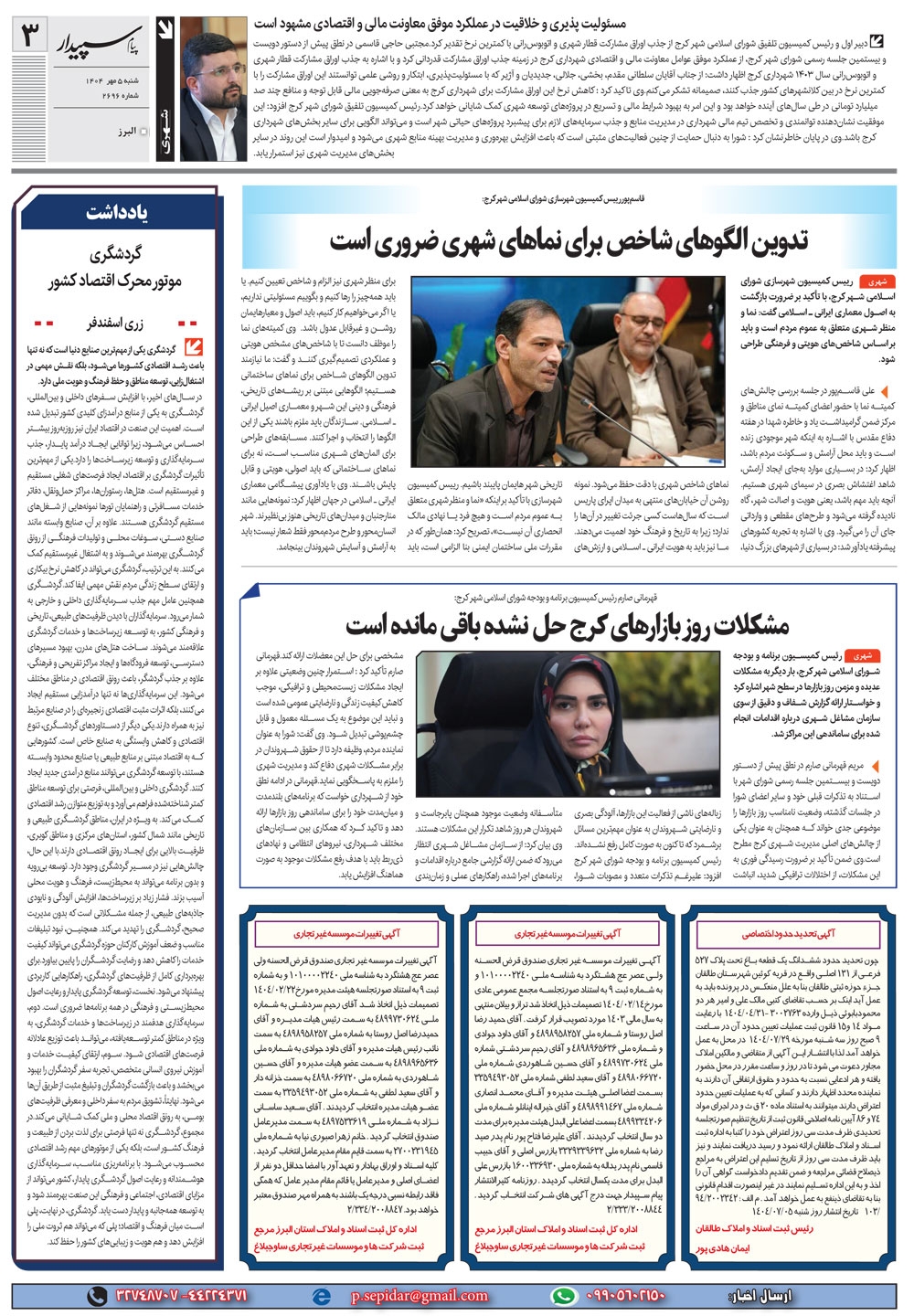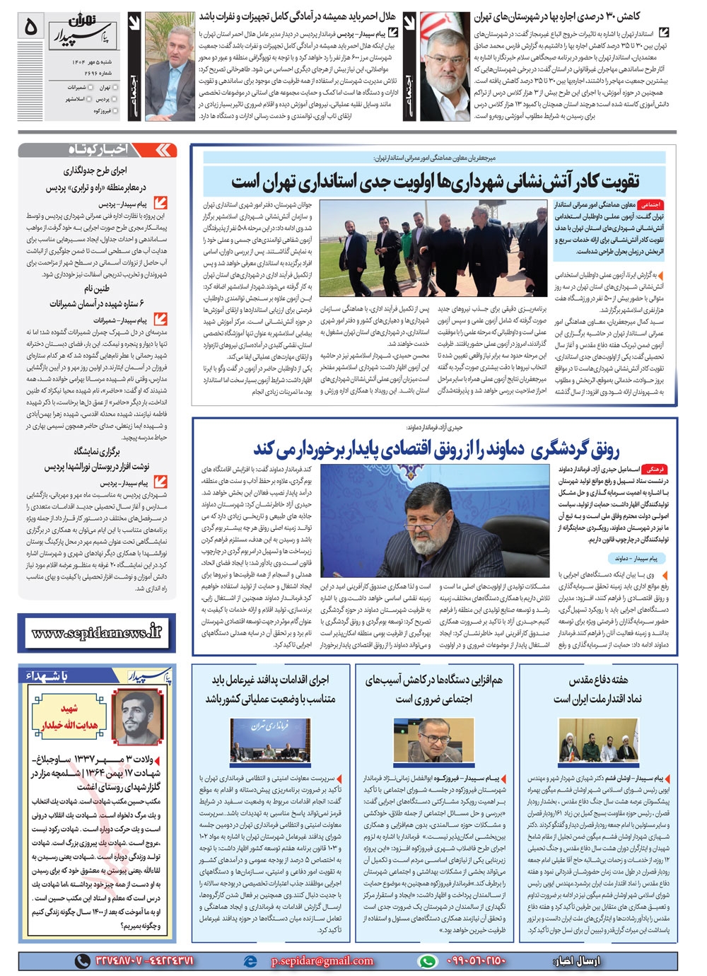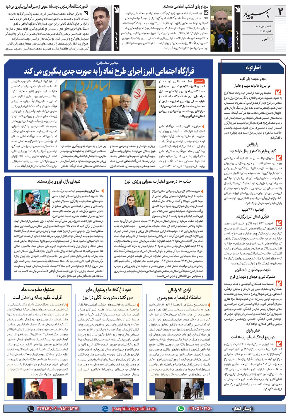 روزنامه پیام سپیدار شماره 2696 شنبه پنجم مهر سال هزارو چهارصدو چهار منتشر شد و در دسترس مخاطبین قرار گرفت. روزنامه پیام سپیدار را می توانید از کیوسک های مطبوعاتی سطح شهر تهیه کنید.