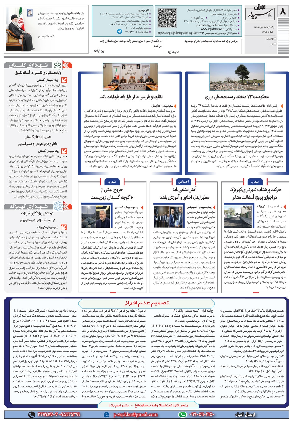 روزنامه پیام سپیدار شماره 2702 یکشنبه سیزدهم مهر سال هزارو چهارصدو چهار منتشر شد و در دسترس مخاطبین قرار گرفت. روزنامه پیام سپیدار را می توانید از کیوسک های مطبوعاتی سطح شهر تهیه کنید.