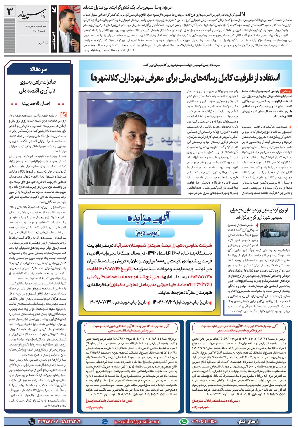 روزنامه پیام سپیدار شماره 2714سه شنبه بیست و نهم مهر سال هزارو چهارصدو چهار منتشر شد و در دسترس مخاطبین قرار گرفت. روزنامه پیام سپیدار را می توانید از کیوسک های مطبوعاتی سطح شهر تهیه کنید.