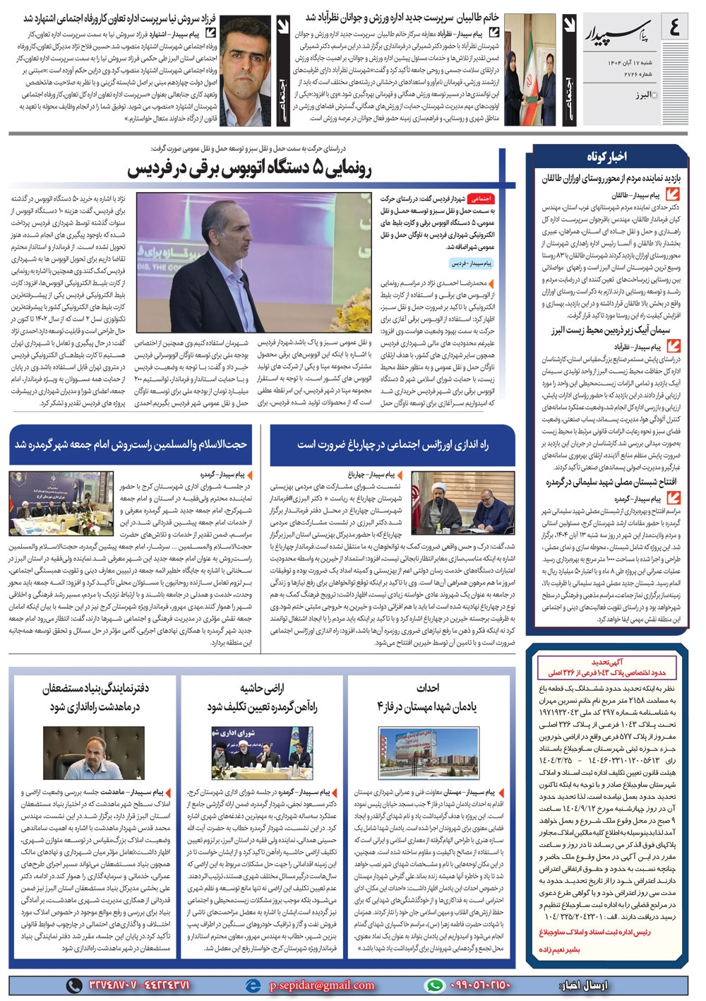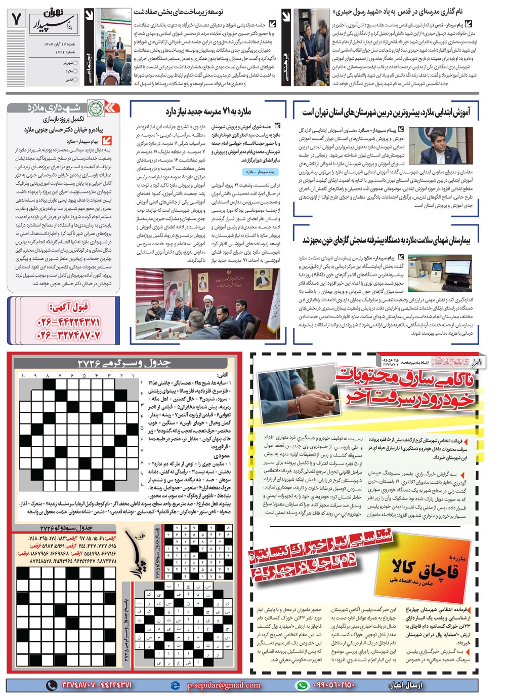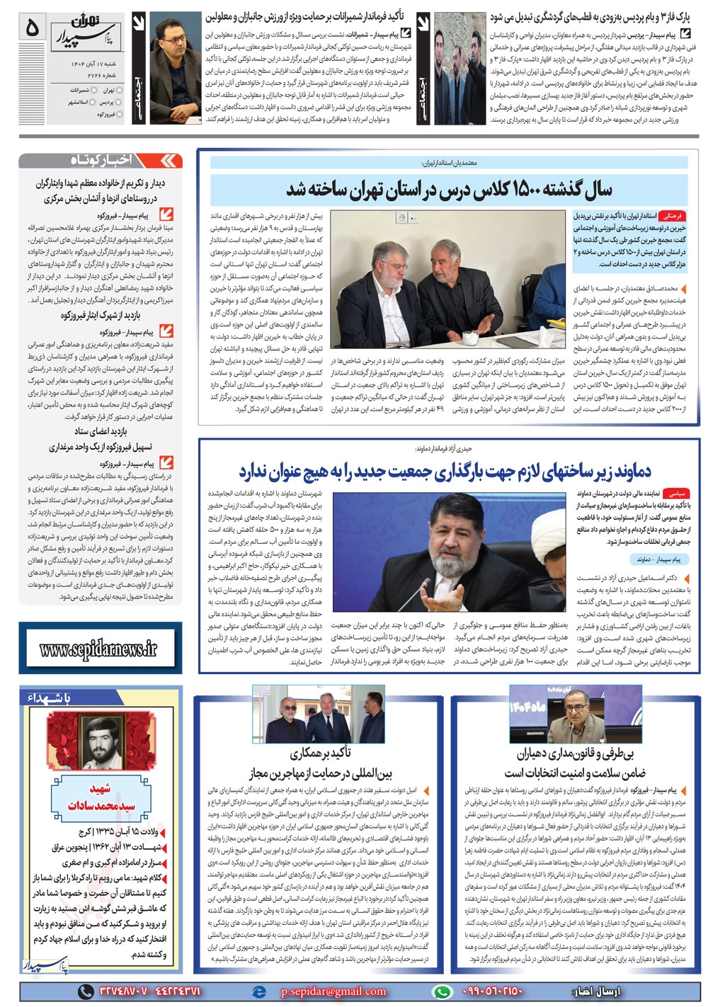 روزنامه پیام سپیدار شماره 2726 شنبه هفدهم آبان سال هزارو چهارصدو چهار منتشر شد و در دسترس مخاطبین قرار گرفت. روزنامه پیام سپیدار را می توانید از کیوسک های مطبوعاتی سطح شهر تهیه کنید.