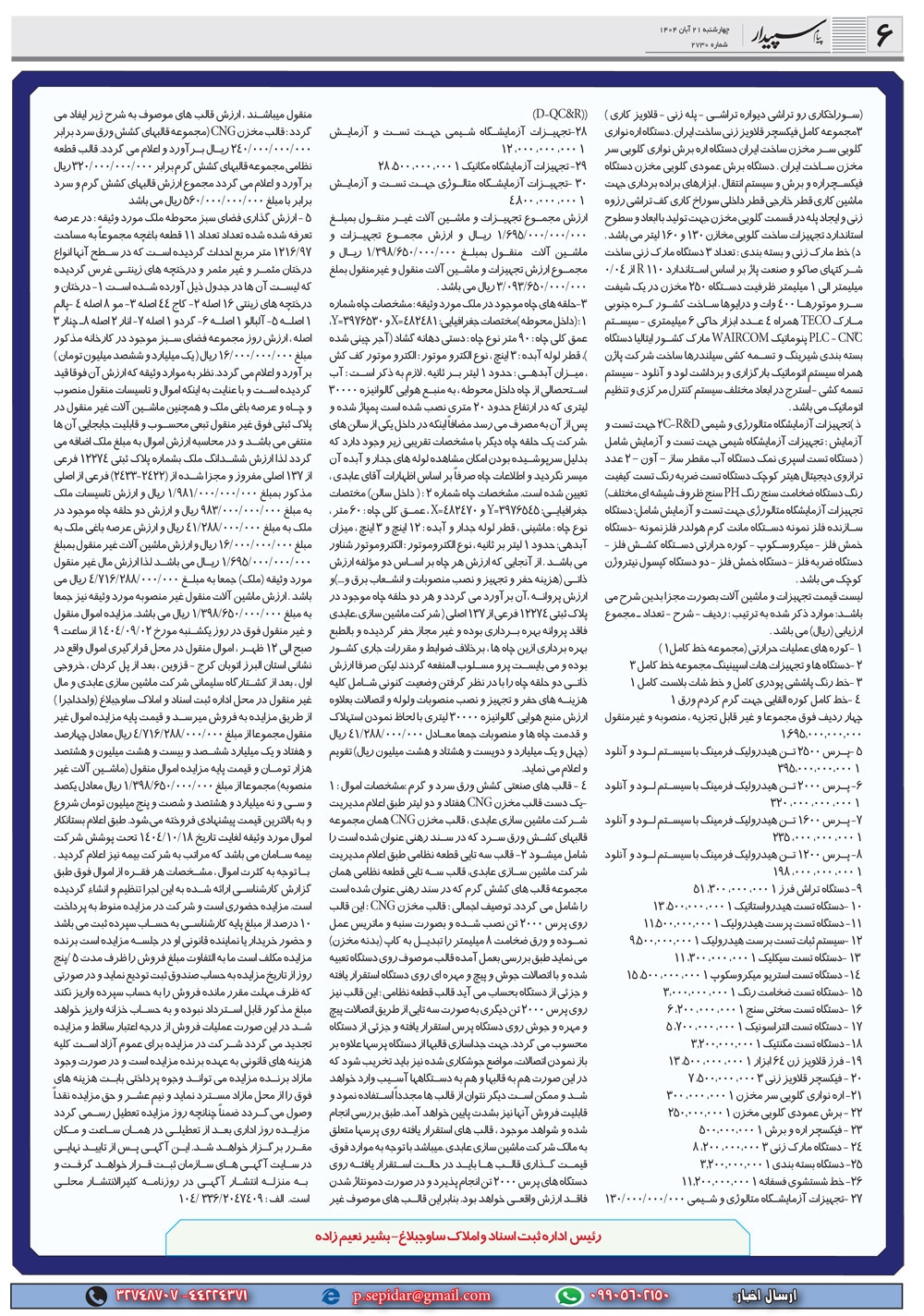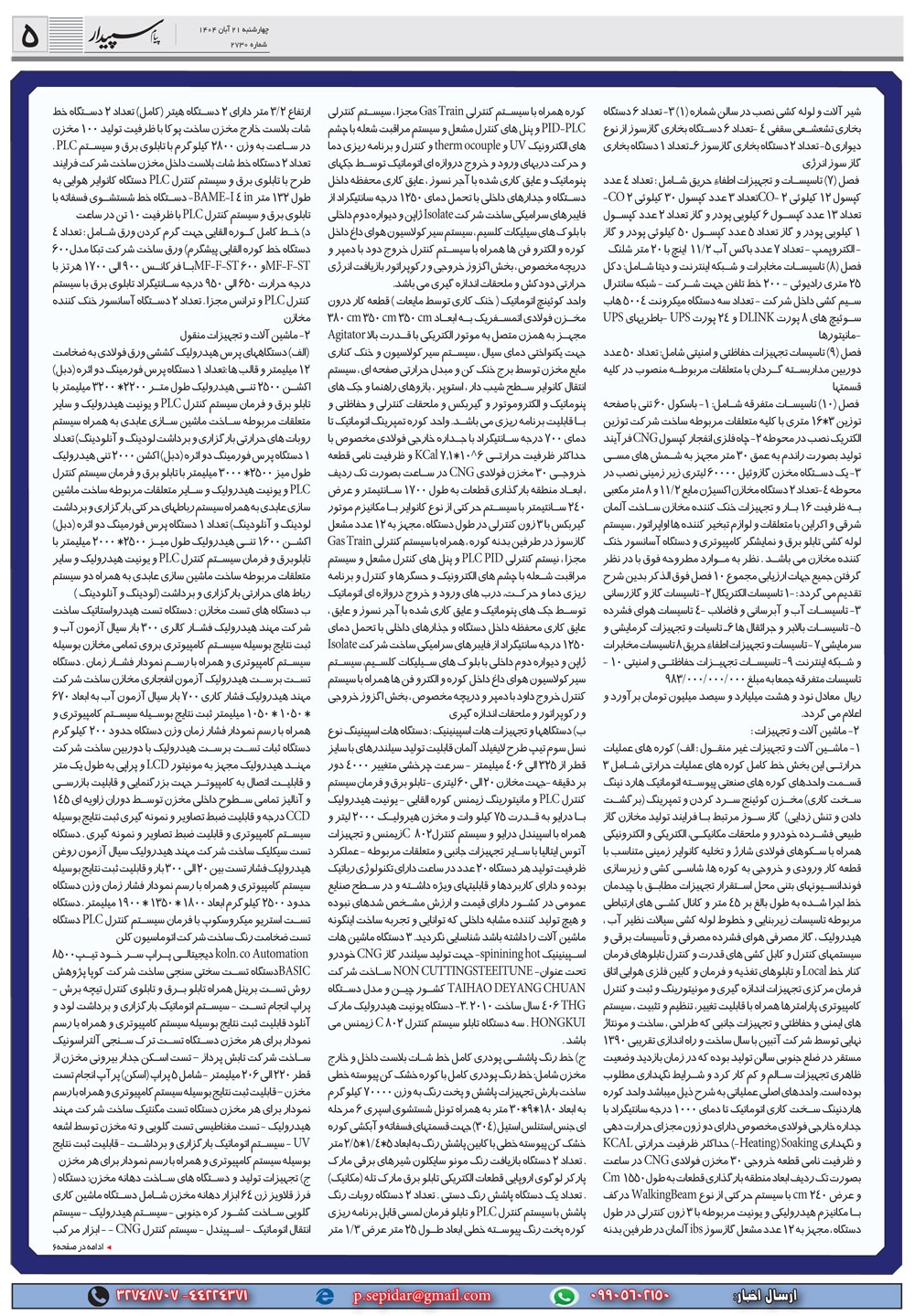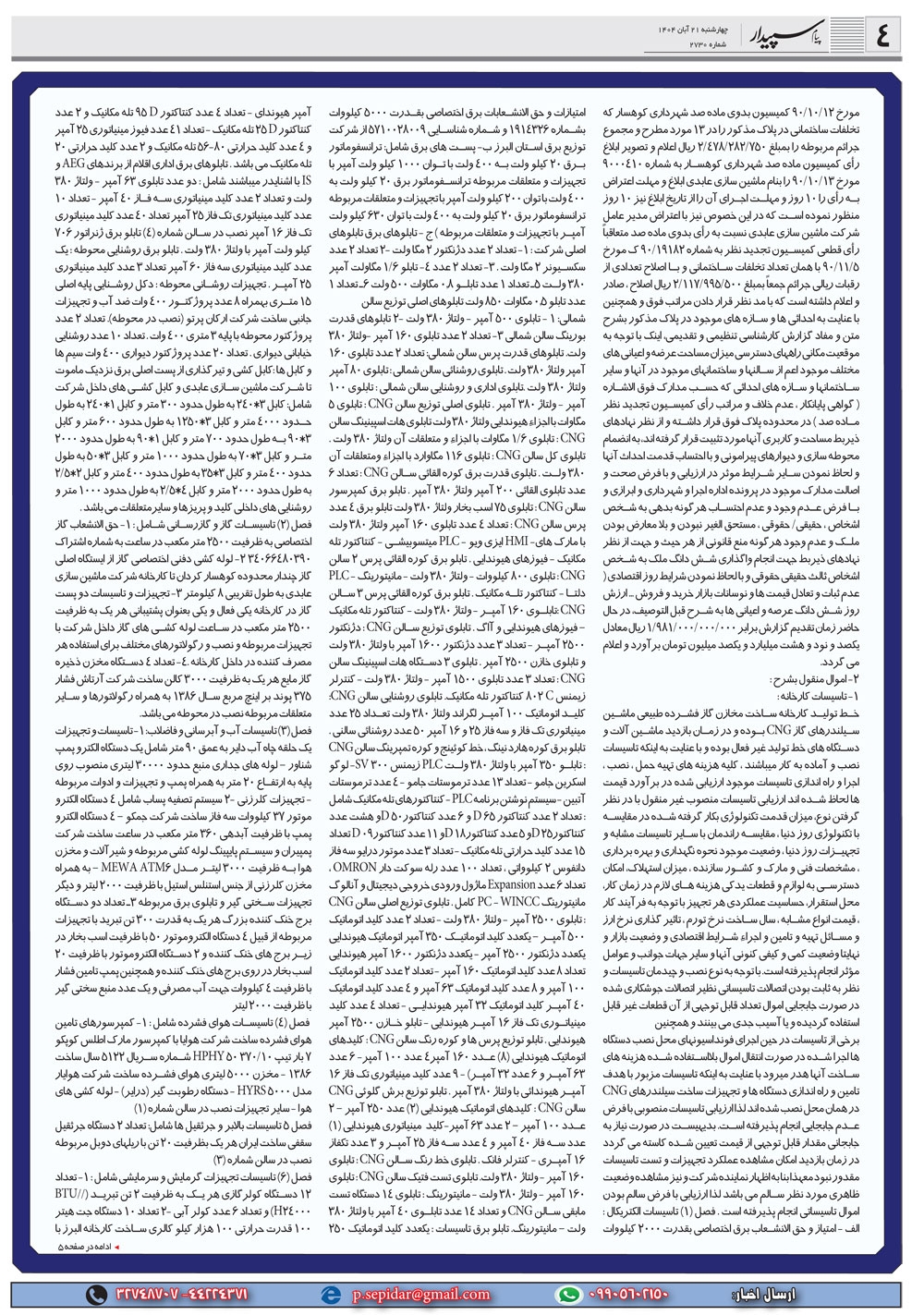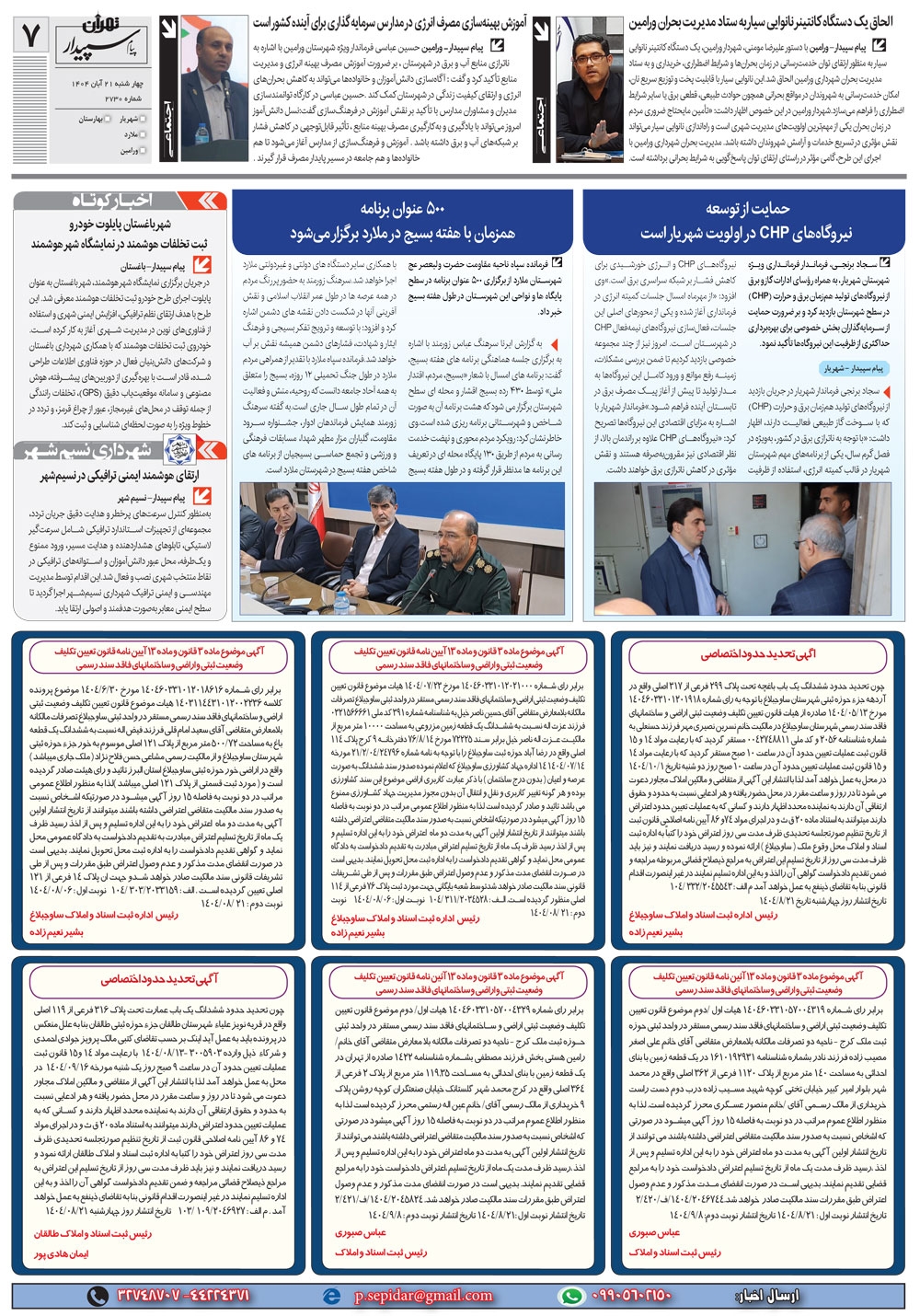 روزنامه پیام سپیدار شماره 2730 چهارشنبه بیست و یکم آبان سال هزارو چهارصدو چهار منتشر شد و در دسترس مخاطبین قرار گرفت. روزنامه پیام سپیدار را می توانید از کیوسک های مطبوعاتی سطح شهر تهیه کنید.