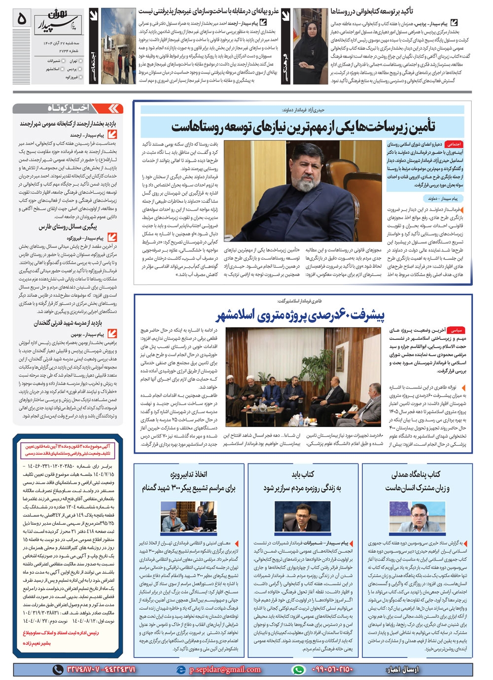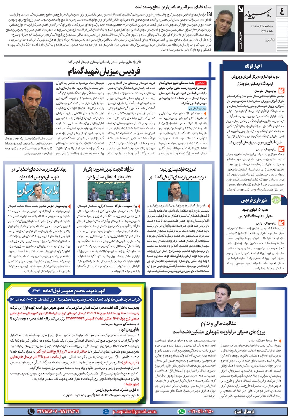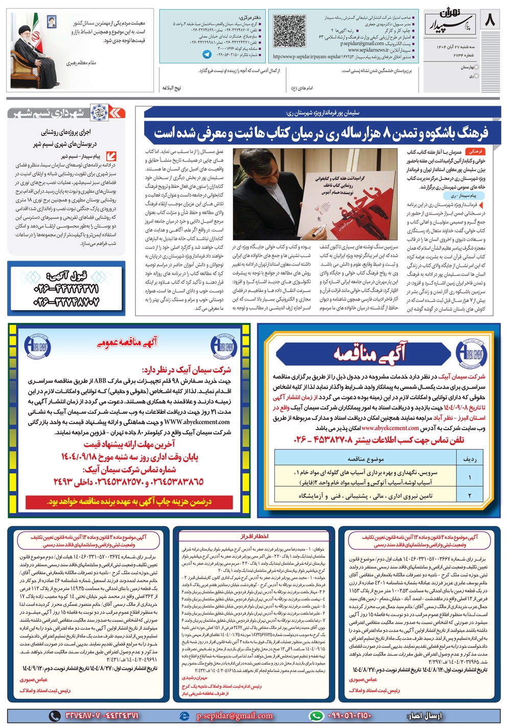 روزنامه پیام سپیدار شماره 2734 سه شنبه بیست و هفتم آبان سال هزارو چهارصدو چهار منتشر شد و در دسترس مخاطبین قرار گرفت. روزنامه پیام سپیدار را می توانید از کیوسک های مطبوعاتی سطح شهر تهیه کنید.
