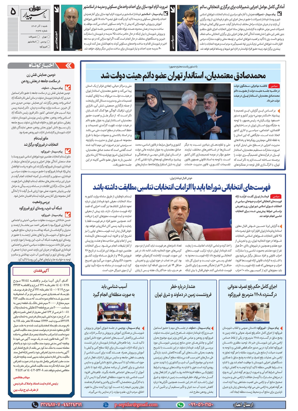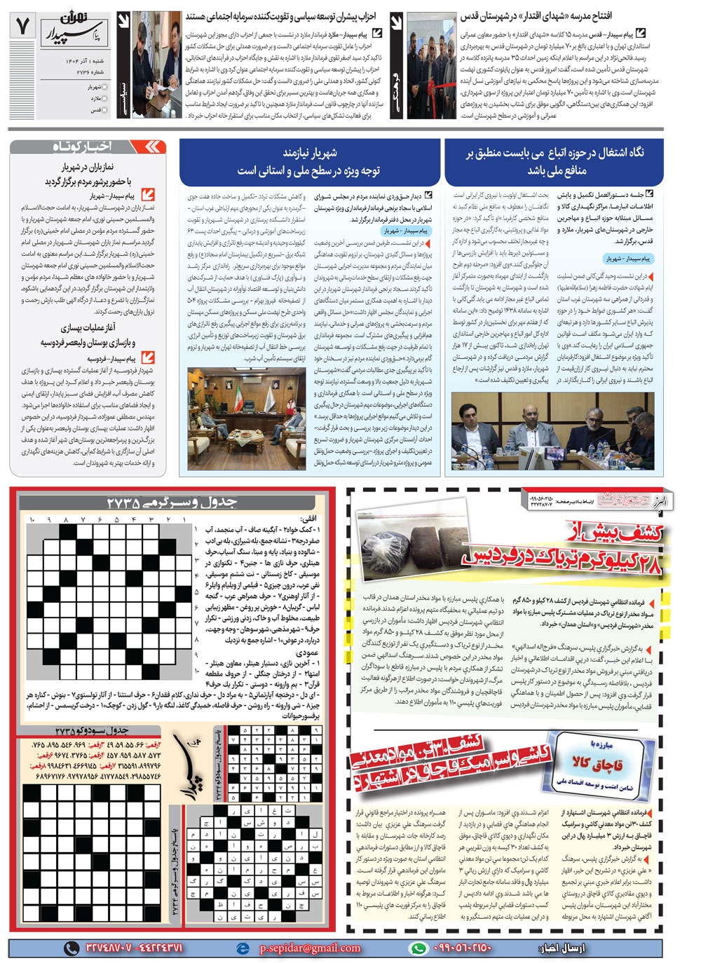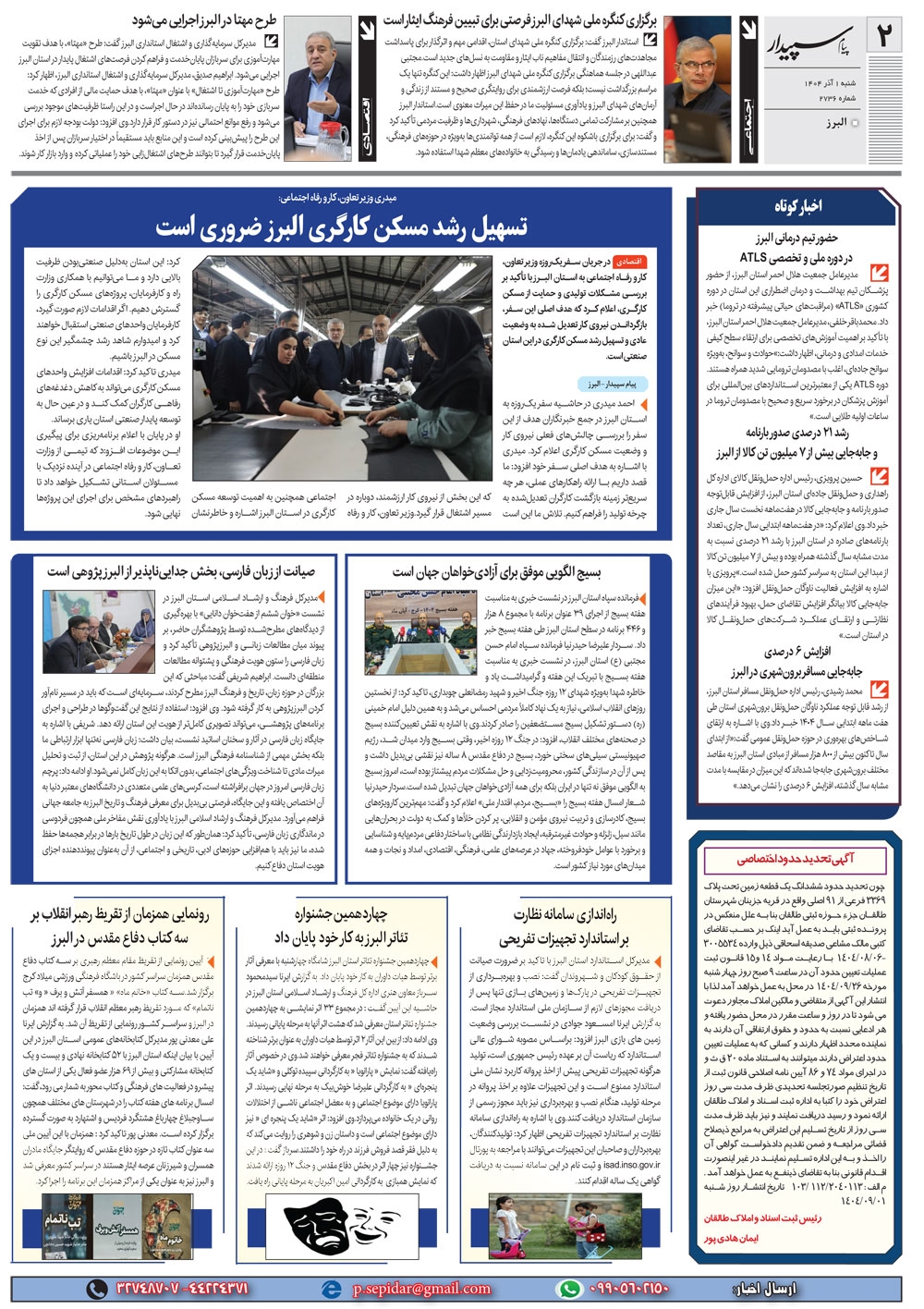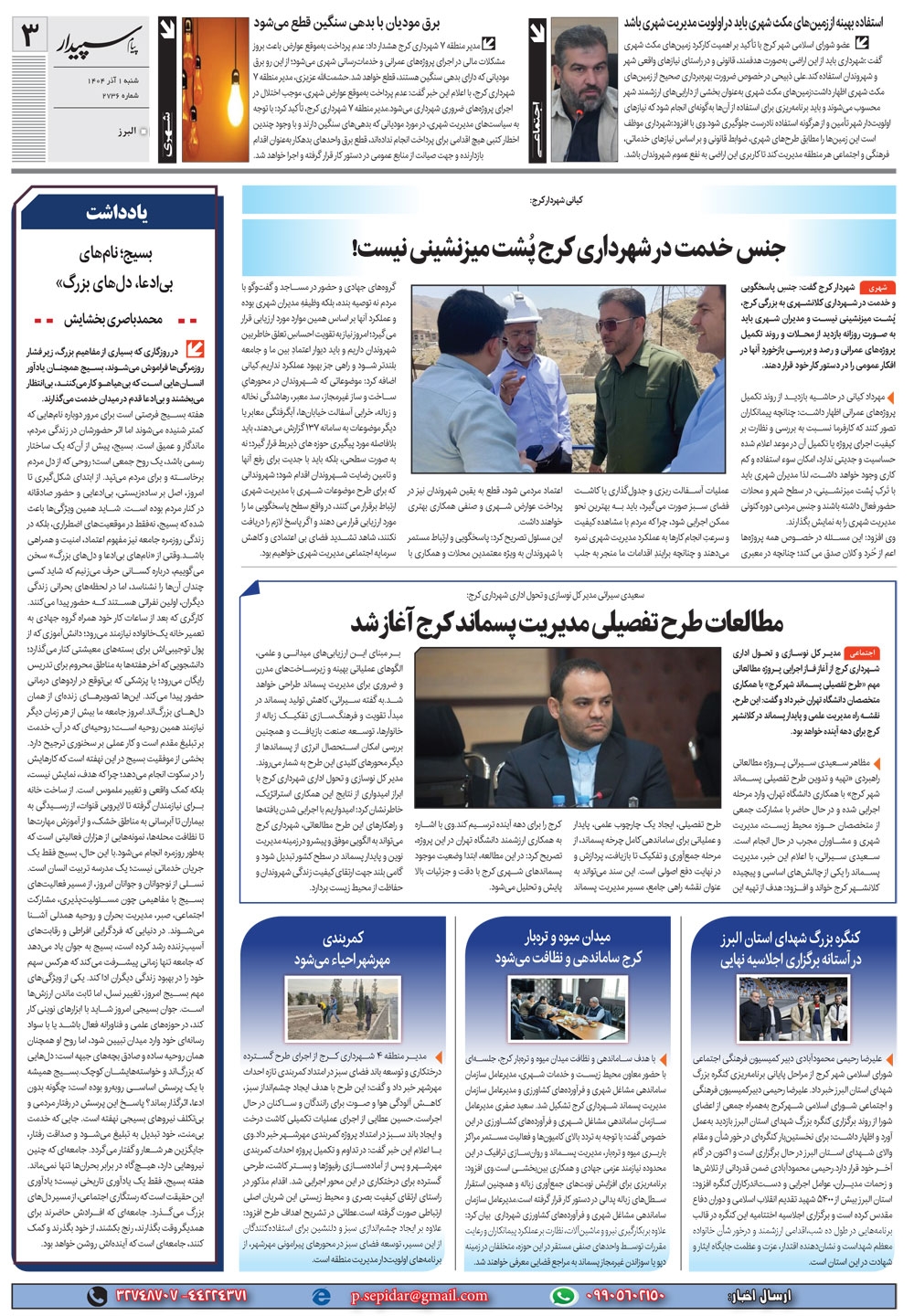 روزنامه پیام سپیدار شماره 2736 شنبه یکم آذر سال هزارو چهارصدو چهار منتشر شد و در دسترس مخاطبین قرار گرفت. روزنامه پیام سپیدار را می توانید از کیوسک های مطبوعاتی سطح شهر تهیه کنید.