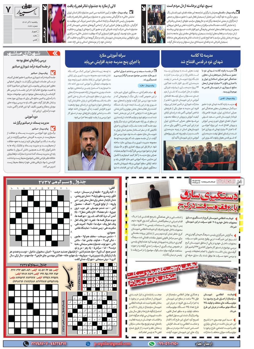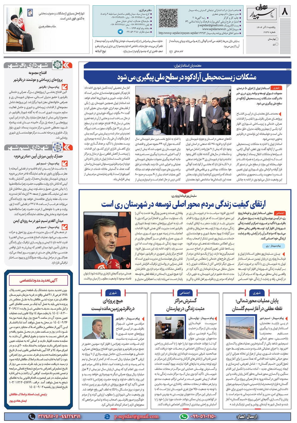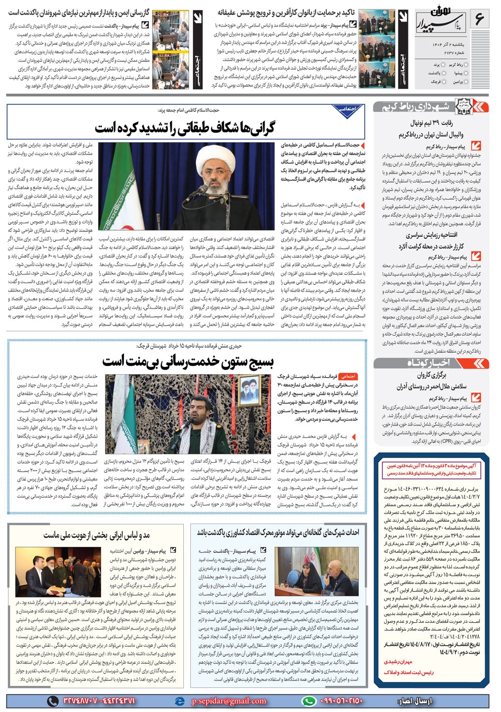 روزنامه پیام سپیدار شماره 2737 یکشنبه دوم آذر سال هزارو چهارصدو چهار منتشر شد و در دسترس مخاطبین قرار گرفت. روزنامه پیام سپیدار را می توانید از کیوسک های مطبوعاتی سطح شهر تهیه کنید.