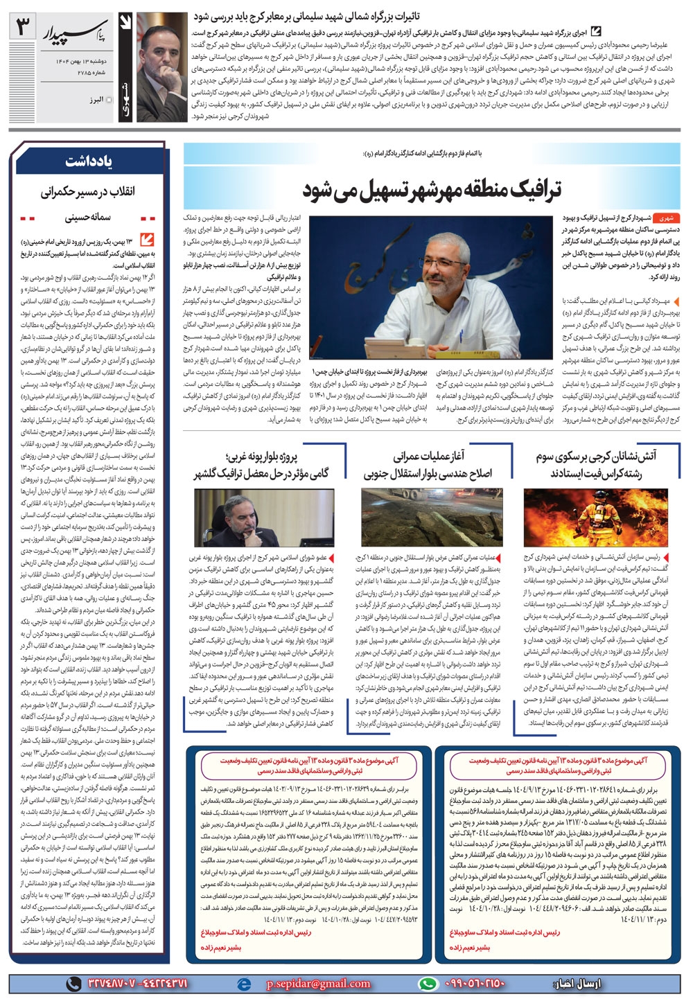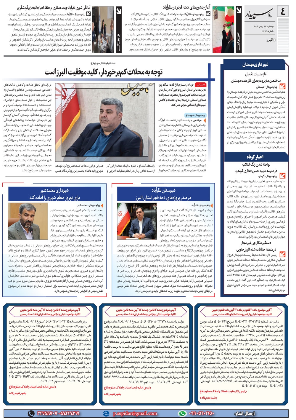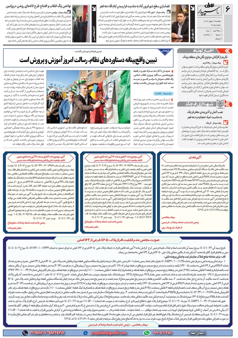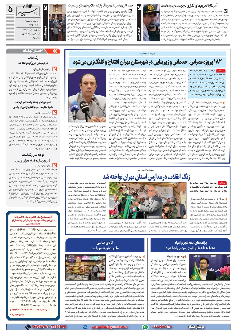 روزنامه پیام سپیدار شماره 2785 دوشنبه سیزدهم بهمن ماه سال هزارو چهارصدو چهار منتشر شد و در دسترس مخاطبین قرار گرفت. روزنامه پیام سپیدار را می توانید از کیوسک های مطبوعاتی سطح شهر تهیه کنید.