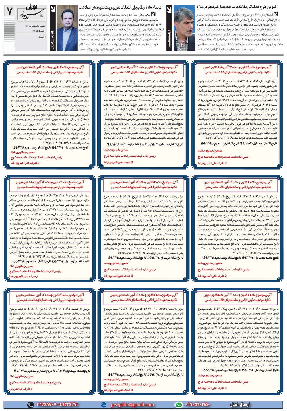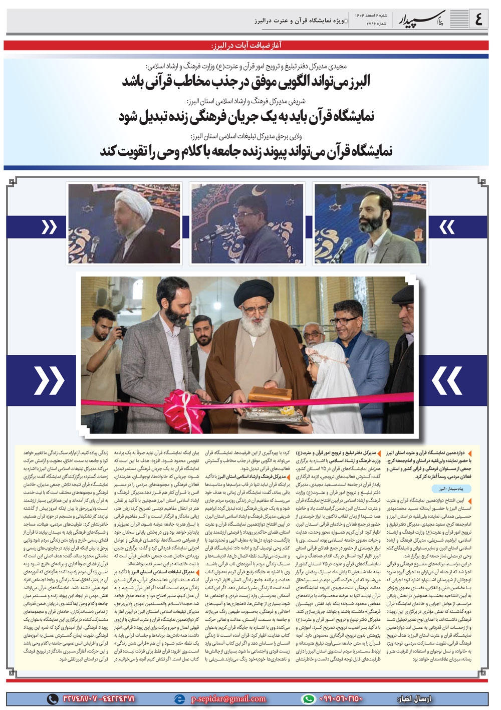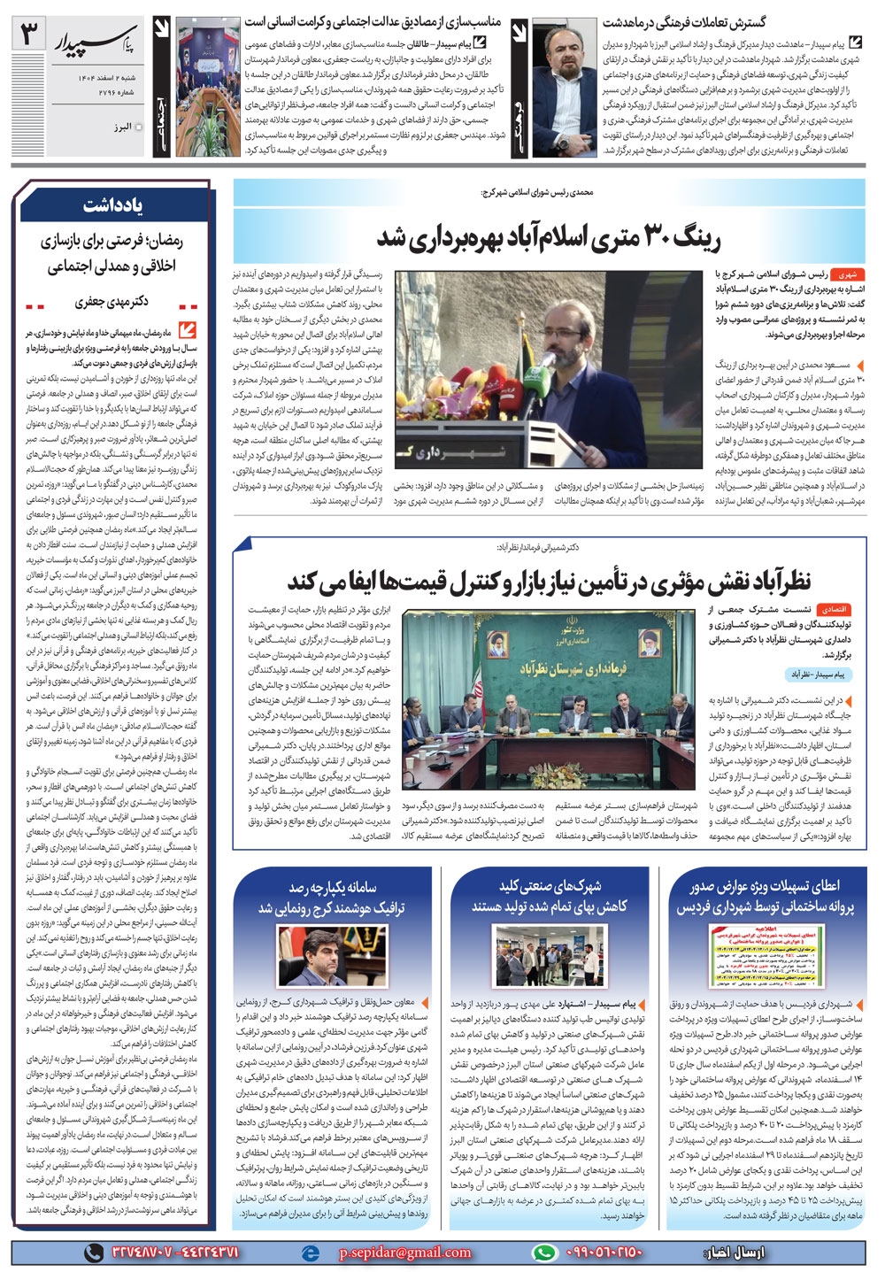 روزنامه پیام سپیدار شماره 2796 شنبه دوم اسفند ماه سال هزارو چهارصدو چهار منتشر شد و در دسترس مخاطبین قرار گرفت. روزنامه پیام سپیدار را می توانید از کیوسک های مطبوعاتی سطح شهر تهیه کنید.