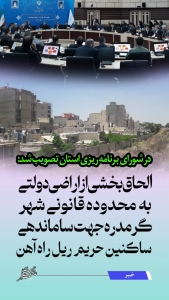 طرح جامع شهر گرمدره در جلسه شورای برنامه ریزی و توسعه استان بررسی و مشکل ۳۰ سالهی ساکنین حریم ریل راه آهن این شهر مرتفع گردید.