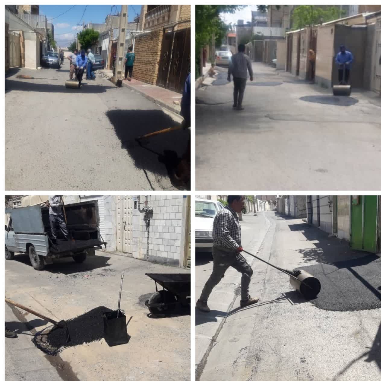 ادامه روند اجرای پروژه لکه گیری و آسفالت معابر سطح شهر گلسار
