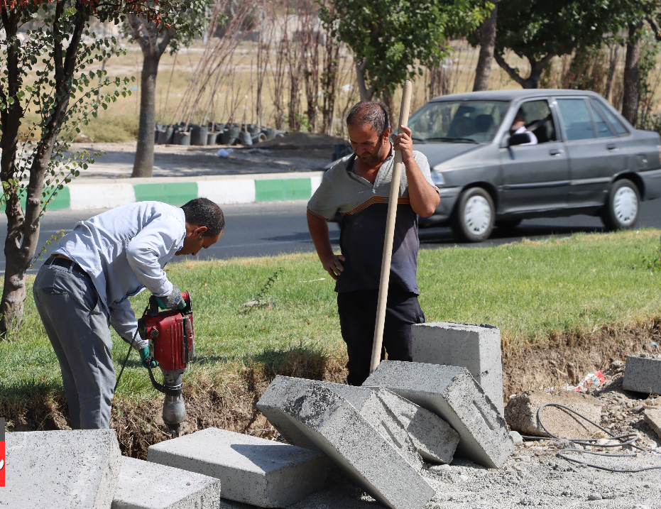 اجرای عملیات جدول‌گذاری ادامه پیاده‌راه دوم بلوار امام خمینی(ره) ماهدشت