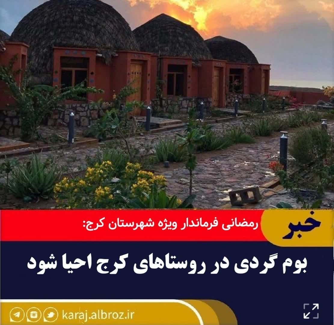 فرماندار کرج همچنین با تاکید بر ضرورت ایجاداقامتگاه های بوم گردی در روستاها گفت: جای اقامتگاه های بوم گردی در مناطق روستایی کرج خالی است این مناطق به واسطه برخورداری از محیط طبیعی در تمامی فصول گردشگر پذیر هستند و نقش ویژه ای در اقتصاد جوامع محلی ایفا می کنند. وی افزود: در محور کرج – کندوان و بخش آسارا نیز مناطق روستایی گردشگر پذیر با زمینه ایجاد اقامتگاه های بوم گردی وجود دارند که موجب توسعه اقتصادی و پویایی منطقه خواهند بود. وی بیان کرد: در روستاهای شاخص بخش مرکزی کرج نیز که مستعد اجرای طرح های بوم گردی هستند باید زمینه اجرای طرح های گردشگری فراهم شود. وی افزود: صنعت گردشگری در کلانشهر کرج باید رونق بگیرد و از تمامی طرح هایی که به توسعه پایدار مناطق روستایی کمک کند حمایت می شو