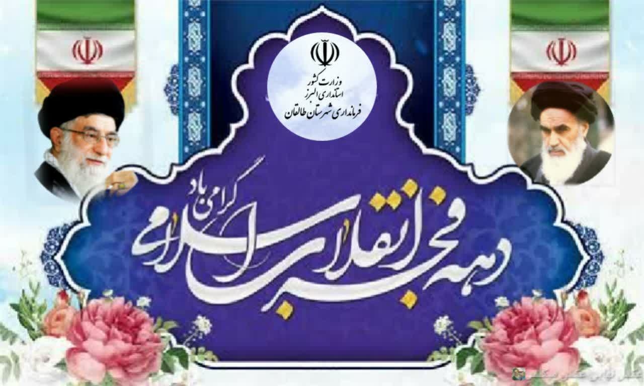 اینجانب ضمن گرامیداشت یاد و خاطره شهدا و امام شهدا، ۱۲ بهمن ماه سالروز بازگشت تاریخی حضرت امام خمینی رحمه الله علیه به میهن اسلامی و آغاز دهه ی مبارک فجر، این حماسه تاریخی را به رهبر معظم انقلاب مدظله العالی، ملت شریف ایران، خانواده ی معظم شهدا، به خصوص شهدای انقلاب اسلامی و به عموم مردم انقلابی و ولایتمدار شهرستان طالقان تبریک و تهنیت عرض نموده، عزت، اقتدار و سربلندی ملت و کشور ایران عزیز را از خداوند متعال مسئلت دارم.