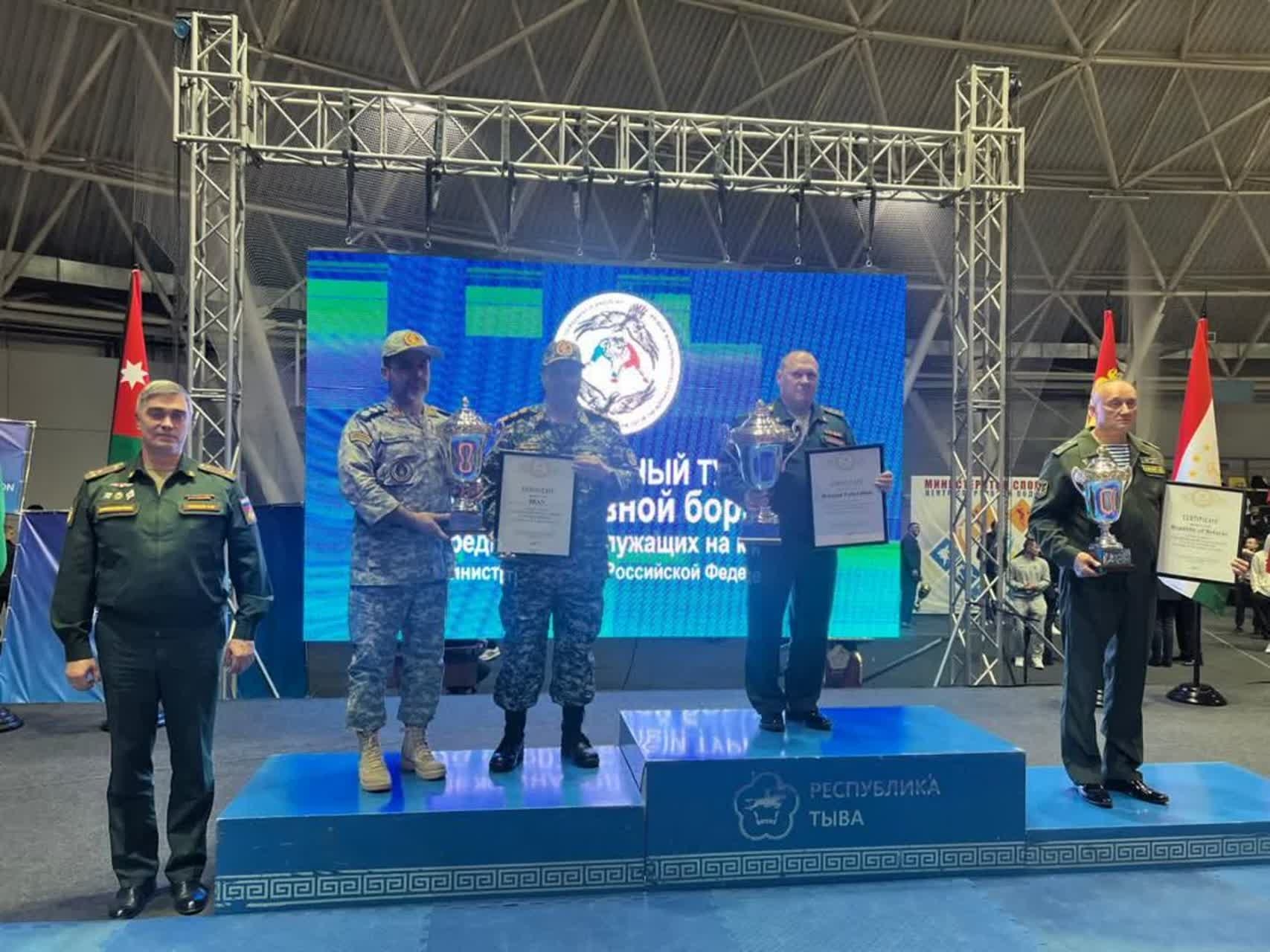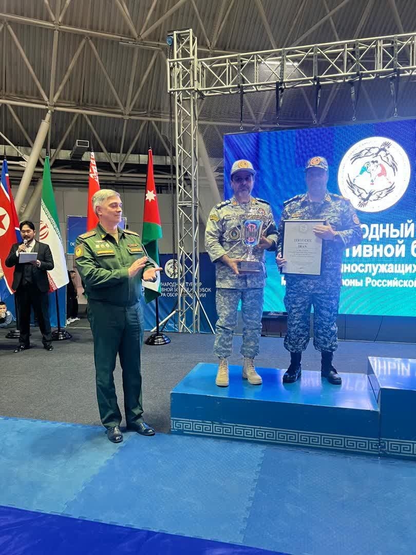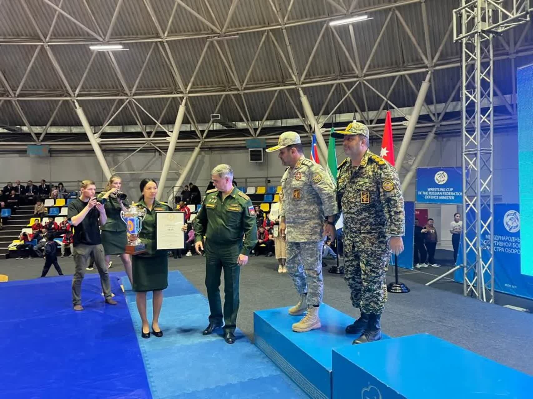 این مسابقات با حضور کشتیگیران ۸کشور جهان در قالب ۱۱ تیم در جمهوری ترووا، شهر قزیل برگزار گردید و تیم ملی کشتی نیروهای مسلح ایران با کسب یک مدال طلا، دو نقره و چهار برنز نایب قهرمان این دوره از مسابقات شد و تیم نظامیان بلاروس نیز به مقام سوم دست یافت. تیم کشتی پایوران نیروهای مسلح ایران را سرهنگ سیروس رضایی، جانشین اداره ورزش ستادکل نیروهای مسلح بعنوان سرپرست و سرهنگ محمدصالح سراج دبیر هیئت کشتی نیروهای مسلح، همراهی نمودند.شایان ذکر است که سومین دوره جام وزرات دفاع روسیه از نهم تا چهاردهم مهرماه سال جاری در شهر قزیل روسیه برگزار شد. مدال آوران تیم نیروهای مسلح ایران به شرح ذیل میباشد؛ کشتی فرنگی: وزن ۱۳۰ کیلو مهدی کلانتری مقام سوم کشتی آزاد: وزن ۱۲۵ کیلو علیرضا کرزبر مدال طلا وزن ۸۶ کیلو رضا ابراهیم نژاد مدال نقره وزن ۹۷ کیلو محمد حسین میر باغبان مدال نقره وزن ۶۵ کیلو سعید انوری مدال برنز وزن ۷۴ حسین رسولی مدال برنز سرمربیان: علی سراجی کیاسری و نوید مسلمی مربی: حامد ساعد
