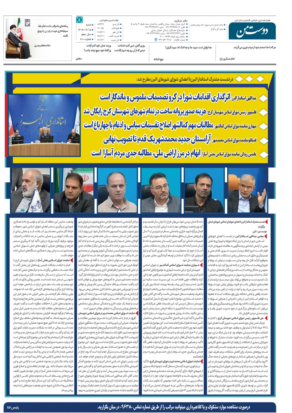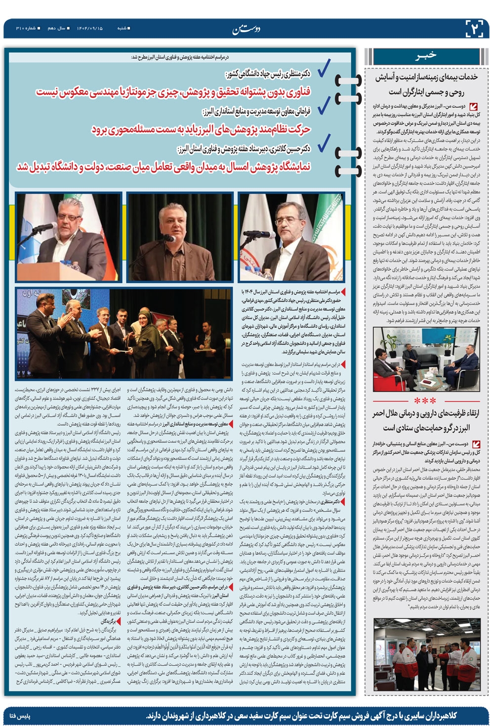 هفته نامه دوست من شماره 310 شنبه پانزدهم آذر ماه سال هزار و چهارصدو سه منتشر شد و در دسترس مخاطبین قرار گرفت. هفته نامه دوست من را می توانید از کیوسک های مطبوعاتی سطح شهر تهیه کنید.
